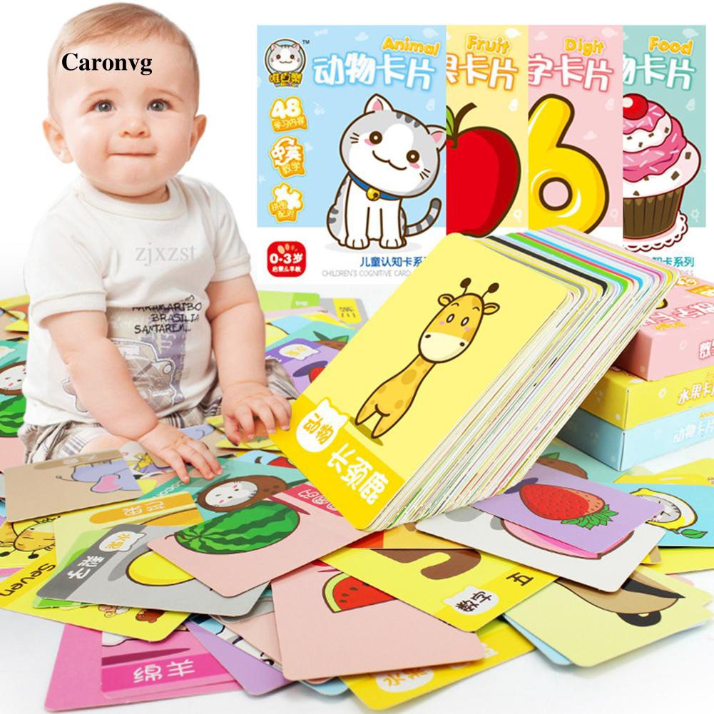 Caronsui 48pcs Set Mainan Kartu Gambar Kartun Buah Hewan Untuk Anak Belajar Bahasa Inggris Shopee Indonesia