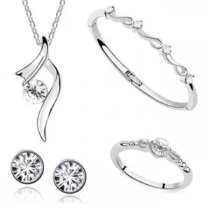 Austrian Crystal Pendant Necklace Earring Bracelet Ring Women Shining Beads Bride Wedding Jewelry Sets Metal Color Silver Blue