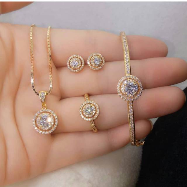 Set Perhiasan Kalung Gelang Anting Cincin Lapis Emas Premium Xuping Asli Shopee Indonesia