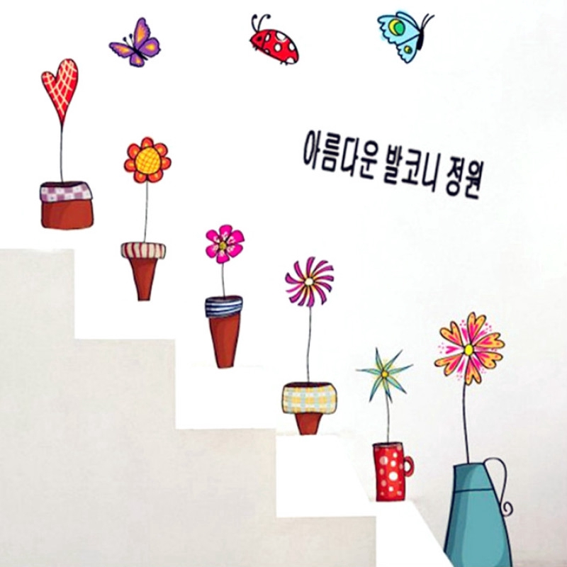Kartun Warna Warni Bunga Pot Hiasan Rumah Dekorasi Stiker Dinding Shopee Indonesia