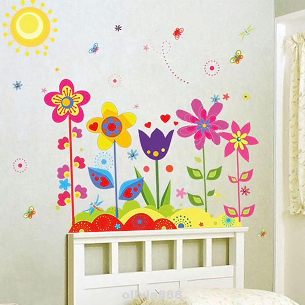 Stiker Dinding Desain Kartun Bunga Warna Warni Untuk Dekorasi Shopee Indonesia