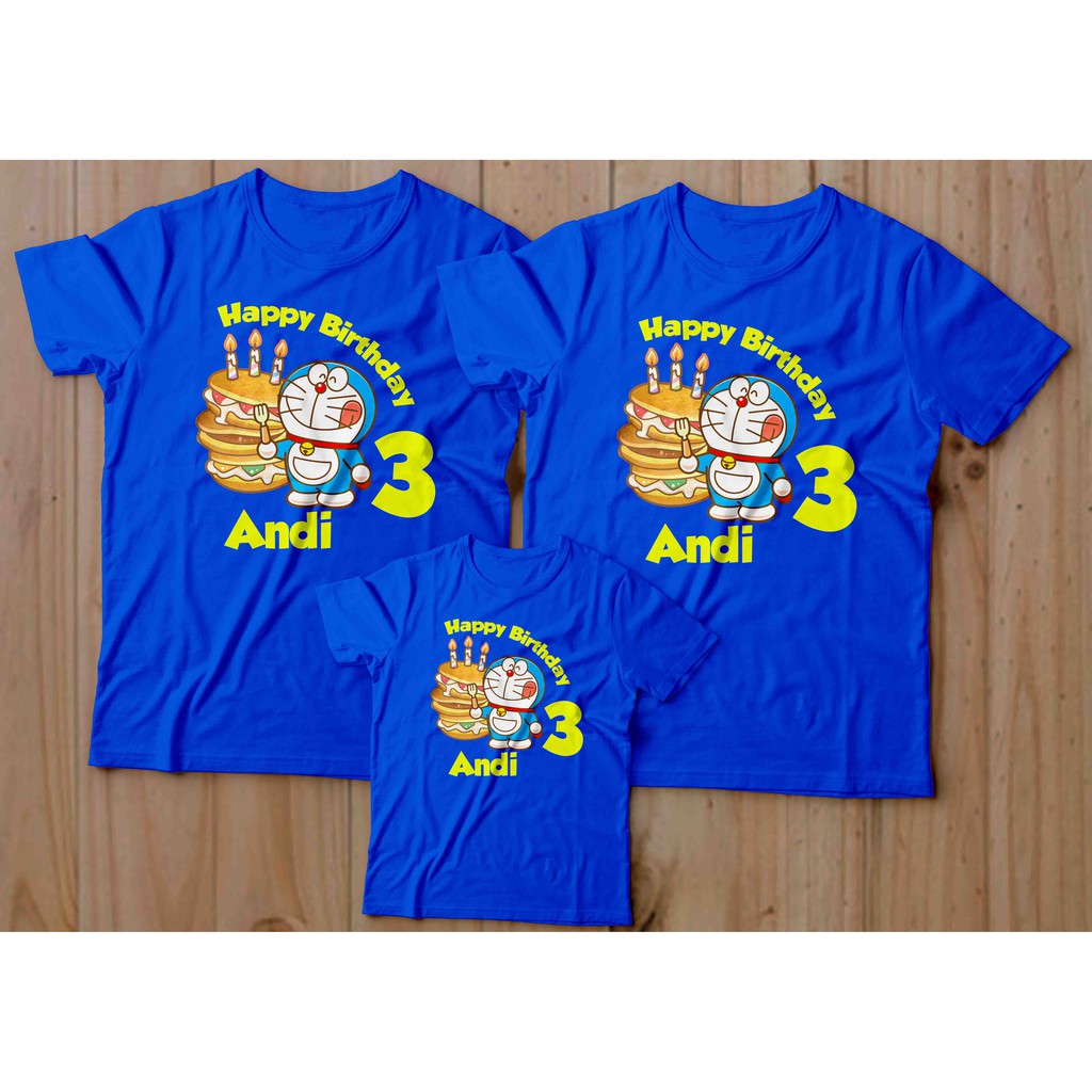 Kaos Family Keluarga Baju Couple Ultah Doraemon Tambah Edit Nama Tulisan Shopee Indonesia
