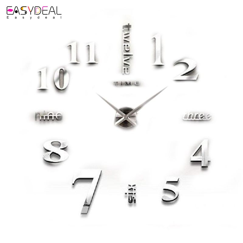 Diy Stiker Dinding Dengan Bahan Mudah Dilepas Dan Gambar Jam 3d Bingkai Perak Untuk Dekorasi Rumah Shopee Indonesia