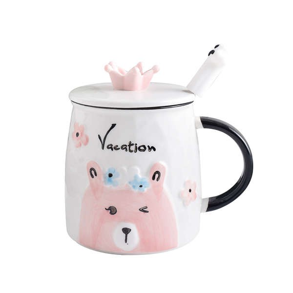 Mug Gadis Cawan Kartun Beruang Comel Yang Dilukis Dengan Tangan Kreatif Cawan Seramik Cawan Air Gadis Dengan Penutup Sudu Cawan Sarapan Cawan Susu Shopee Malaysia