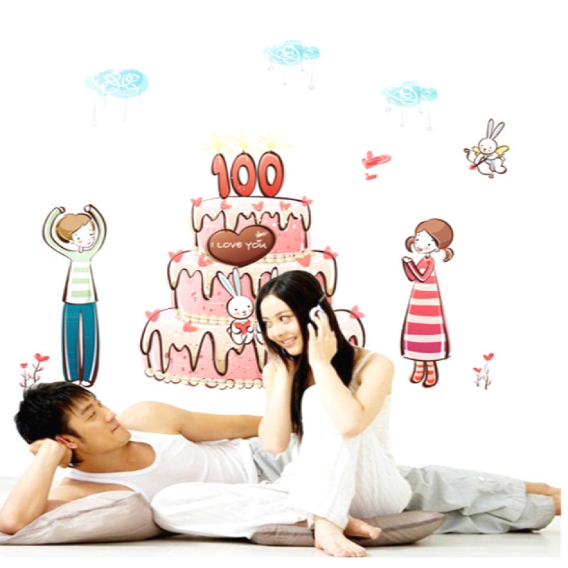 Kartun Kue Pasangan Romantis Cinta Dekorasi Wall Stiker Shopee Indonesia