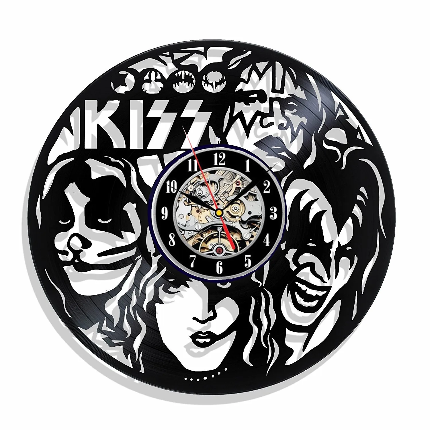 Kiss Rock Band Vinyl Record Black Wall Clock Fan Art Birthday Gifts Home Decor
