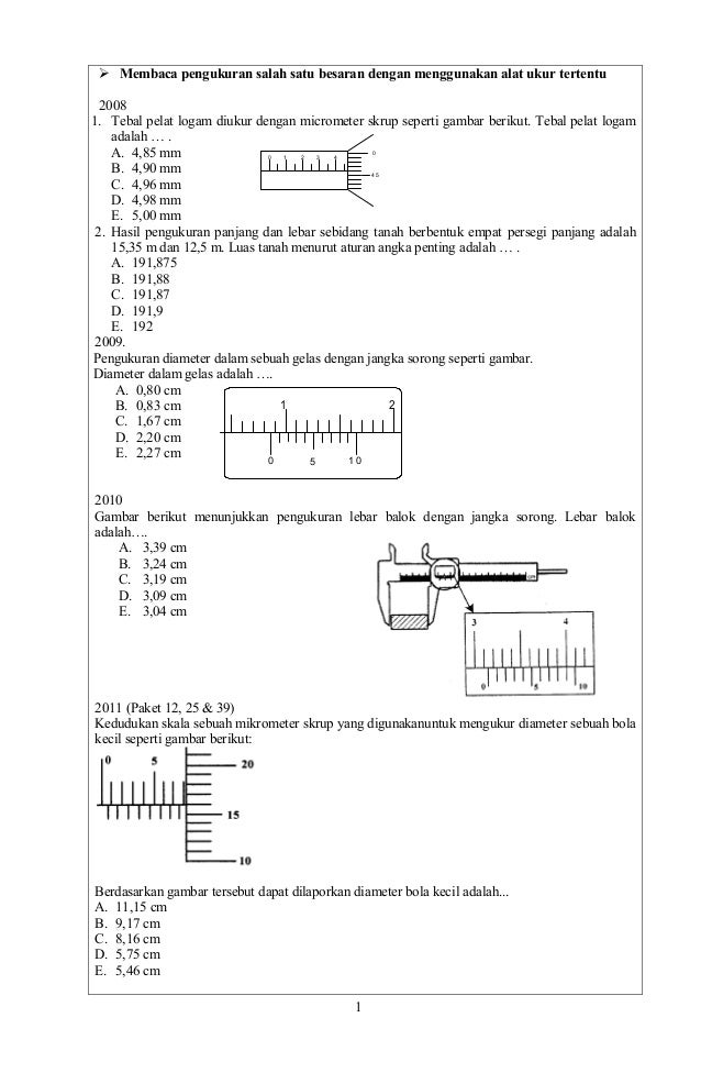 Tebal Pelat Logam Diukur Dengan Mikrometer Skrup Seperti Gambar Docx Document