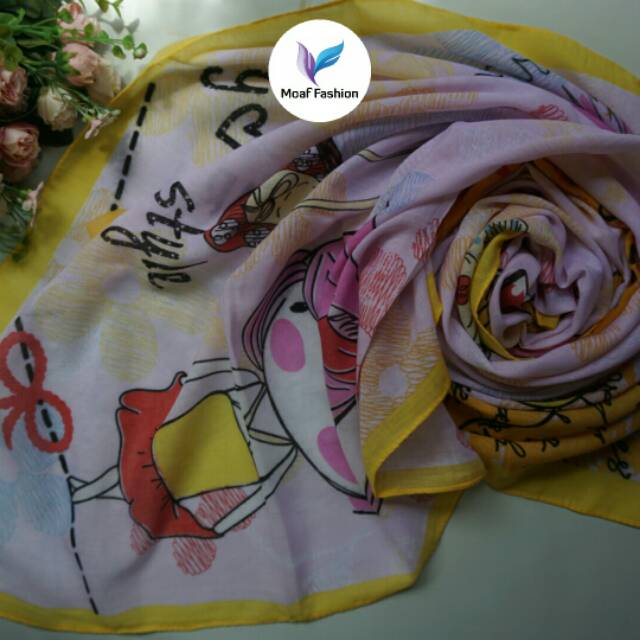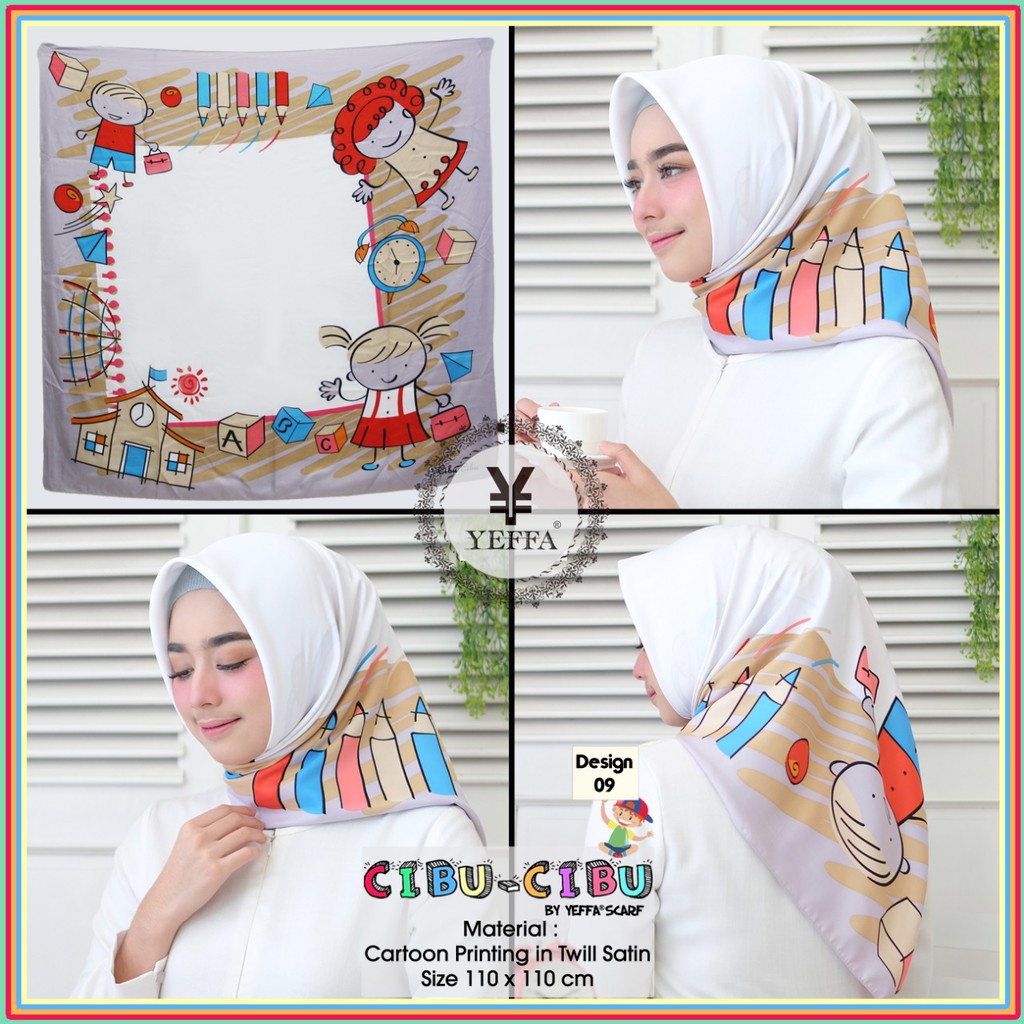 Jilbab Hijab Segi Empat Cibu Cibu Motif Animasi Kartun Lucu Yeffa Scarf Print Cotton Satin B Shopee Indonesia